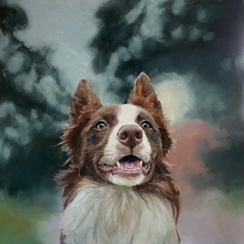 Diane is a local artist specialising in oil paintings and drawings of people and animals. She feels that every person and every animal is unique and never tires of finding a way to show that individuality. Diane is passionate about creating high quality artworks, having studied History Of Art and then a degree in Fine Art at Chelsea College of Art, followed by a Fine Art MA at Chichester University. She is a real animal lover and is kept company in the studio by her Border collie who has been painted several times already!